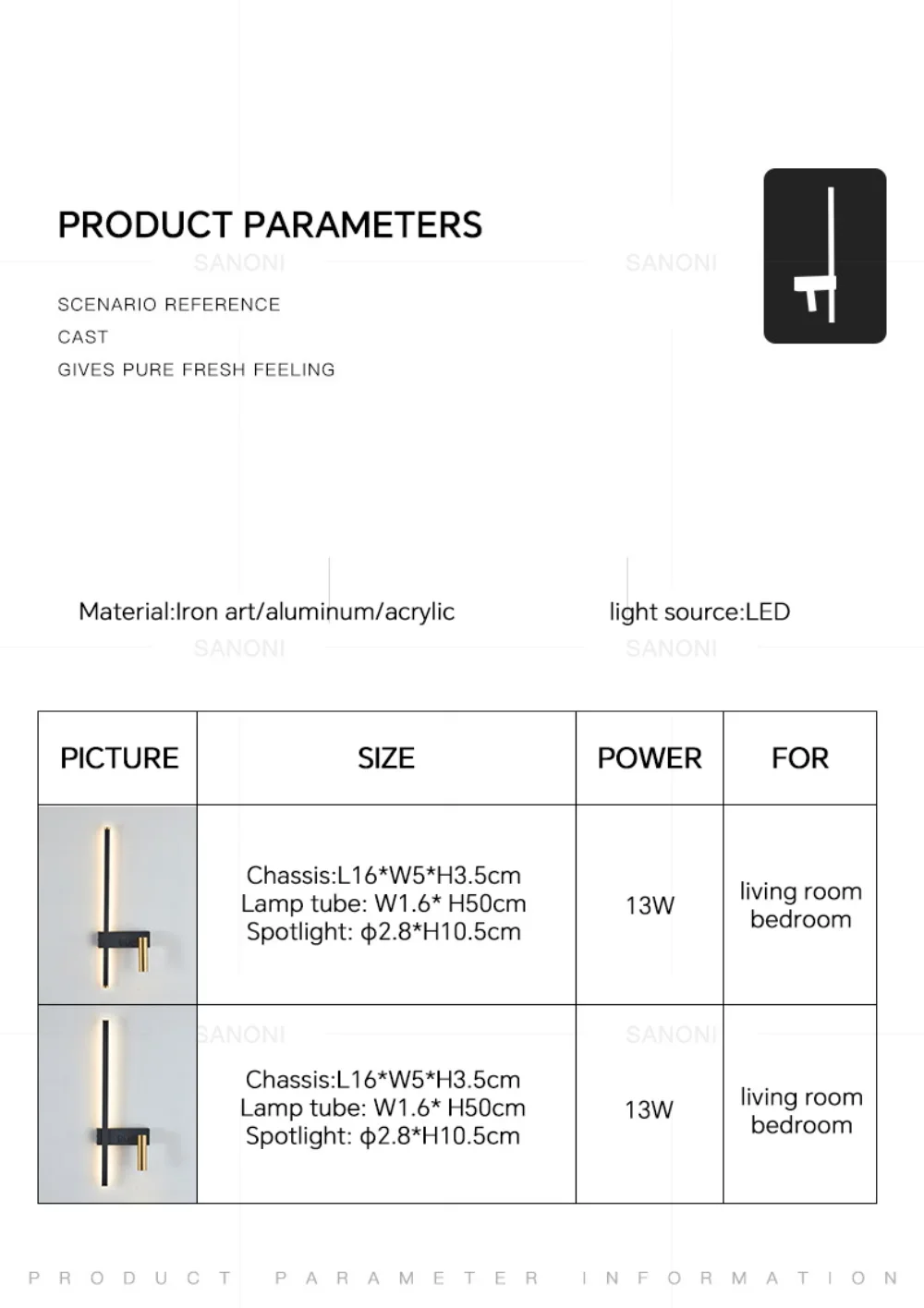 Arandela de Led para sala de estar e quarto